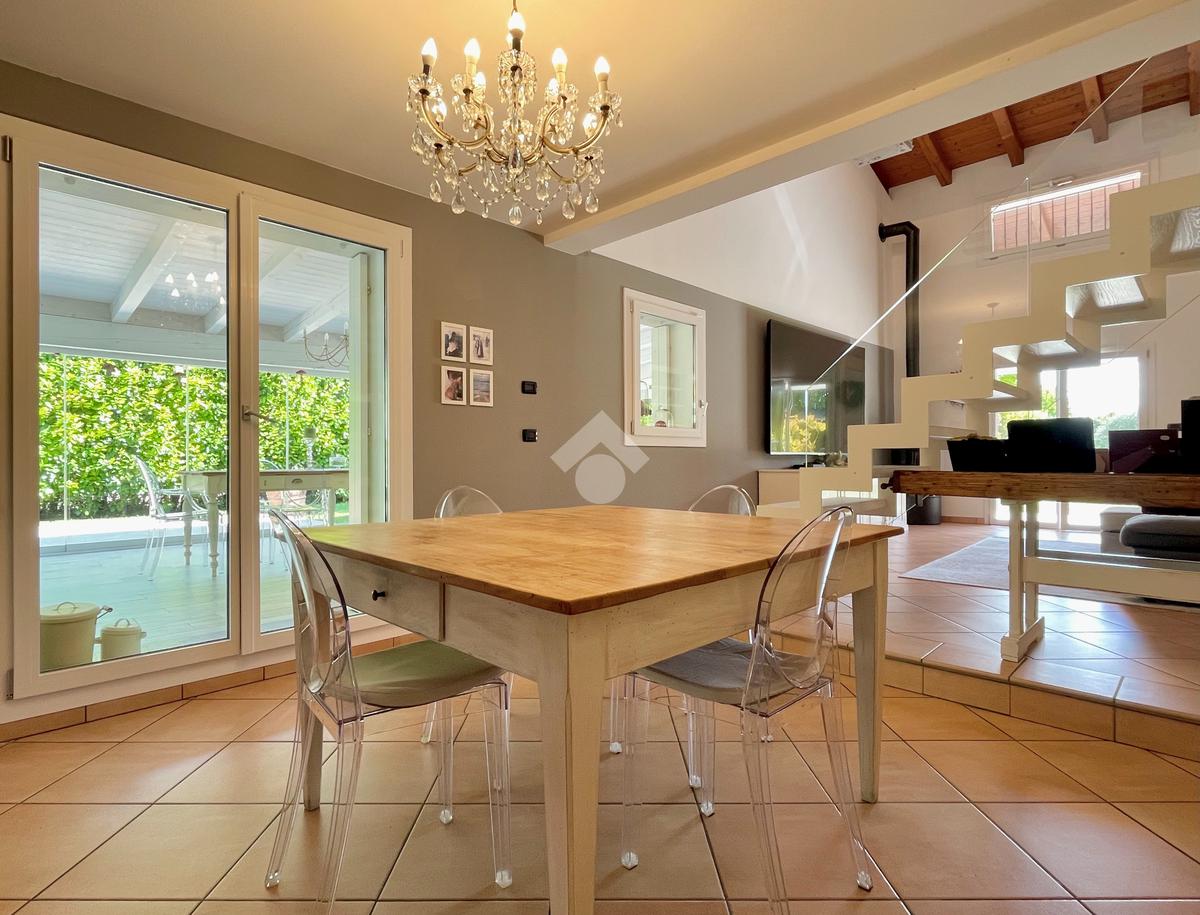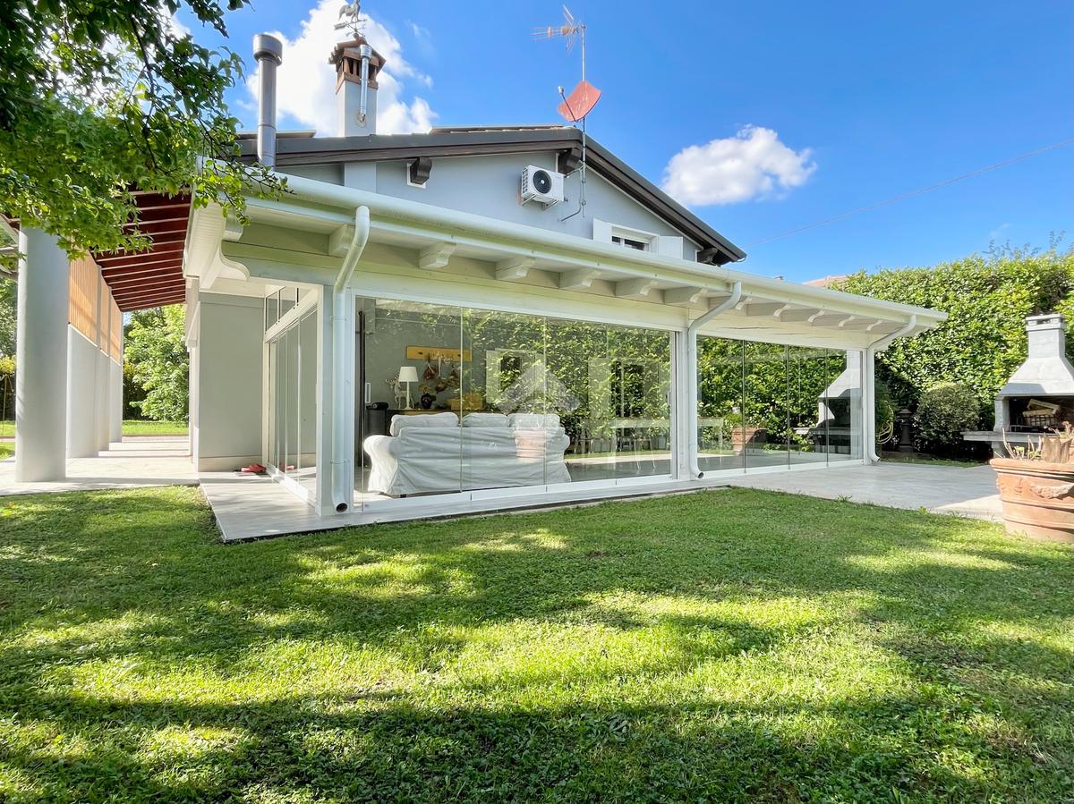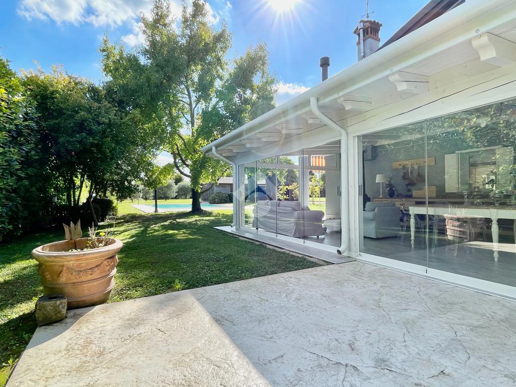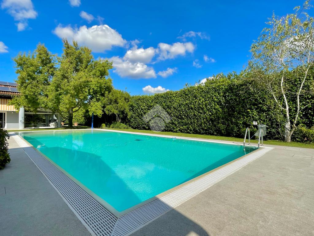In una zona residenziale alle porte di Padova, immersa nel verde, proponiamo in vendita una splendida villa singola di 154 mq, circondata da un ampio giardino privato di circa 800 mq con piscina interrata. L’abitazione, curata in ogni dettaglio, si sviluppa su due livelli: al piano terra troviamo una luminosa e spaziosa zona giorno con bagno per gli ospiti, una cucina abitabile separata con accesso diretto a una bellissima veranda coperta che si affaccia sul giardino e sulla piscina, ideale per pranzi e cene all’aperto. Sempre al piano terra è presente un garage attualmente adattato a studio, con comodo accesso a un locale lavanderia. Al piano superiore si sviluppa la zona notte, composta da tre camere da letto, di cui una matrimoniale con bagno privato, e un secondo bagno finestrato a servizio delle altre due stanze. La villa è dotata di pannelli solari da 6 kW con incentivi fino a 6000€ l'anno, serramenti nuovi installati nel 2023 e caldaia sostituita nel 2022, a garanzia di efficienza energetica e comfort abitativo. Una soluzione ideale per chi cerca indipendenza, ampi spazi interni ed esterni e un’elevata qualità costruttiva.