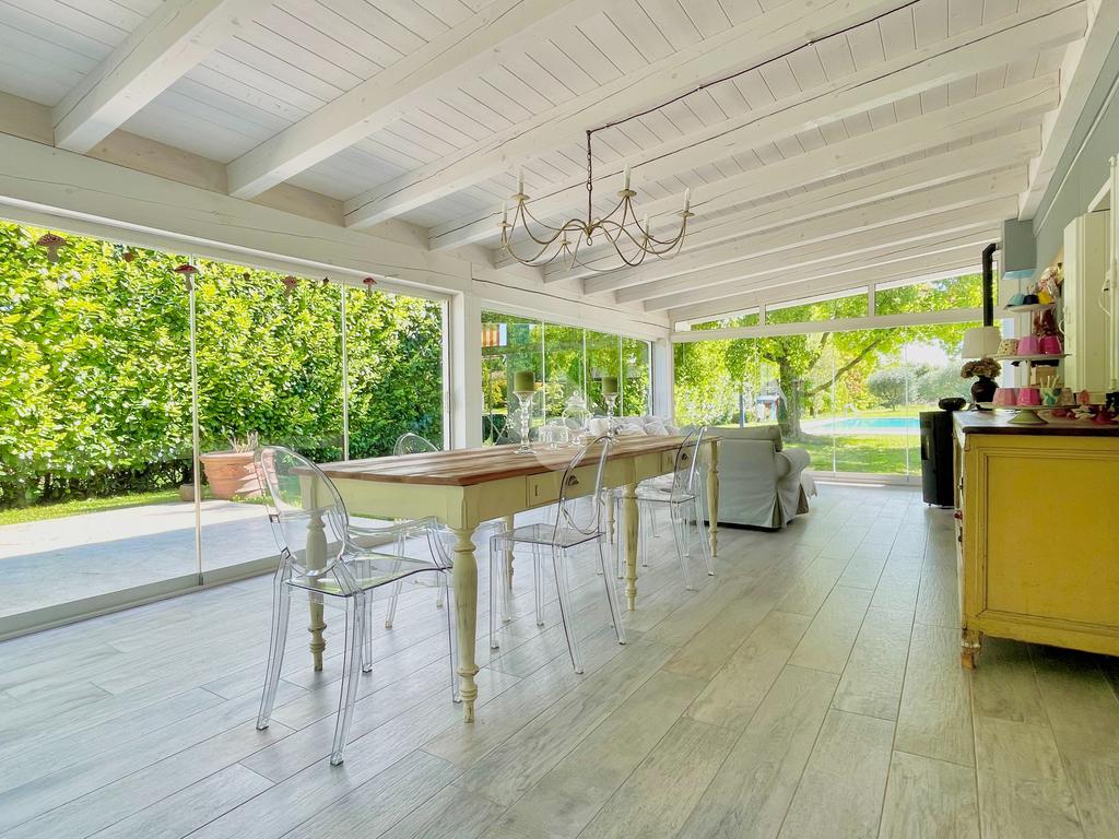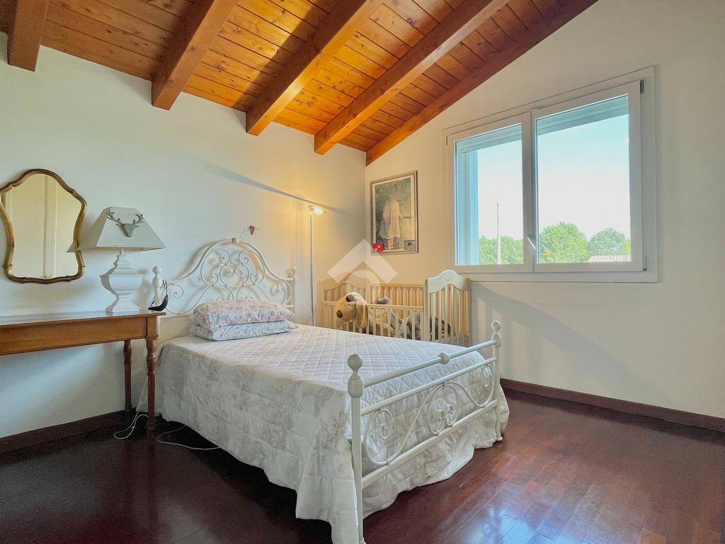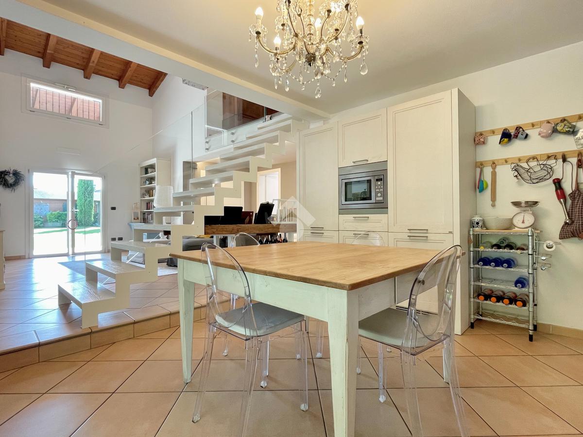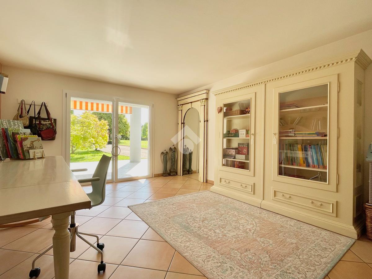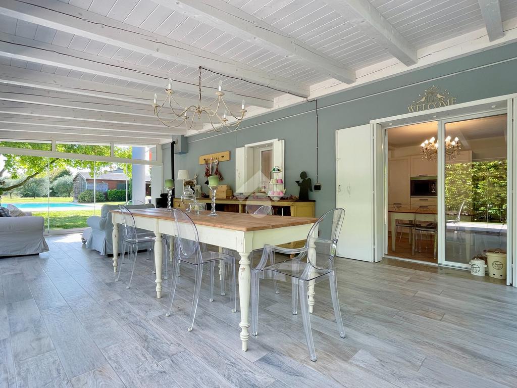In una zona residenziale alle porte di Padova, immersa nel verde, proponiamo in vendita una splendida villa singola di 154 mq, circondata da un ampio giardino privato di circa 800 mq con piscina interrata. L’abitazione, curata in ogni dettaglio, si sviluppa su due livelli: al piano terra troviamo una luminosa e spaziosa zona giorno con bagno per gli ospiti, una cucina abitabile separata con accesso diretto a una bellissima veranda coperta che si affaccia sul giardino e sulla piscina, ideale per pranzi e cene all’aperto. Sempre al piano terra è presente un garage attualmente adattato a studio, con comodo accesso a un locale lavanderia. Al piano superiore si sviluppa la zona notte, composta da tre camere da letto, di cui una matrimoniale con bagno privato, e un secondo bagno finestrato a servizio delle altre due stanze. La villa è dotata di pannelli solari da 6 kW con incentivi fino a 6000€ l'anno, serramenti nuovi installati nel 2023 e caldaia sostituita nel 2022, a garanzia di efficienza energetica e comfort abitativo. Una soluzione ideale per chi cerca indipendenza, ampi spazi interni ed esterni e un’elevata qualità costruttiva.