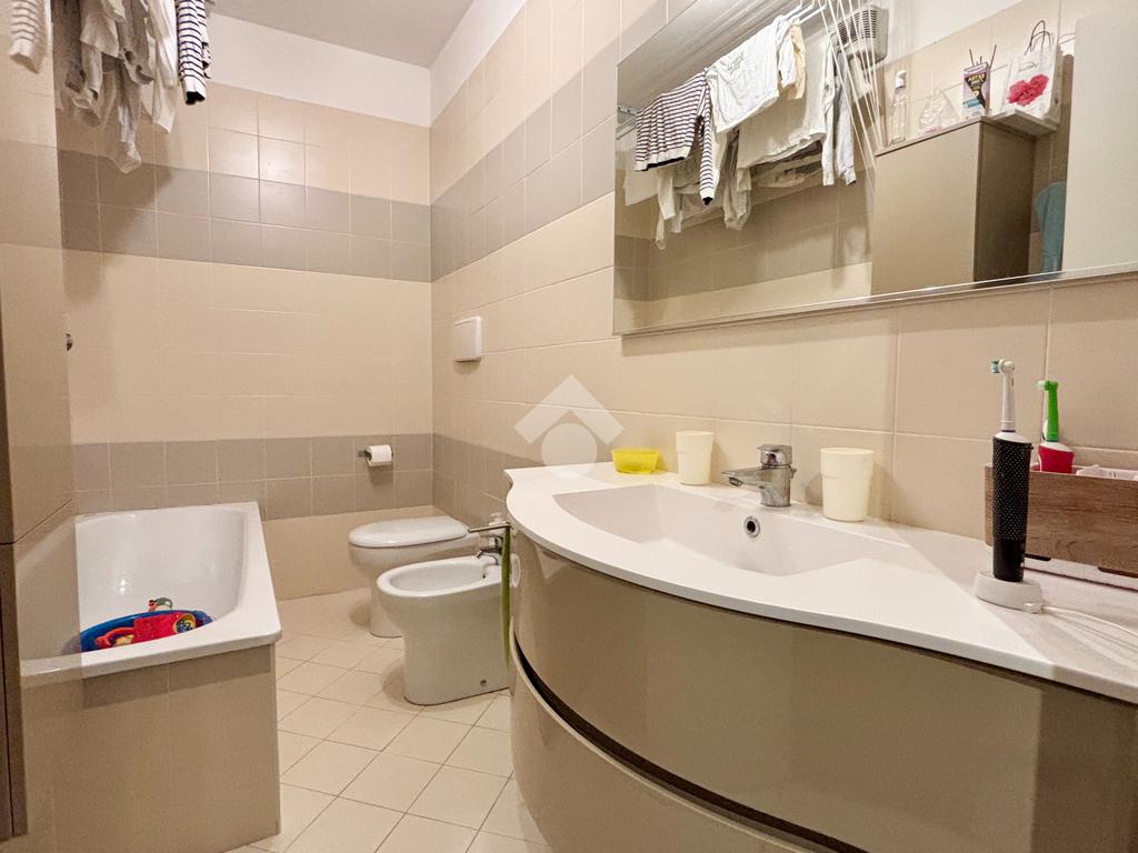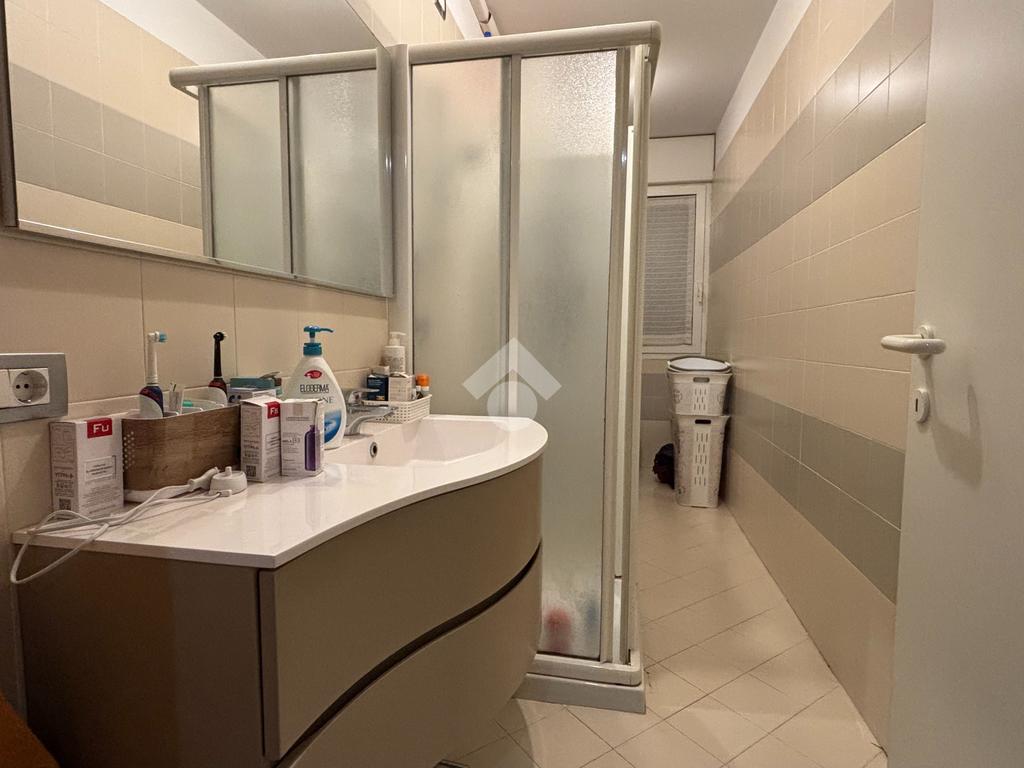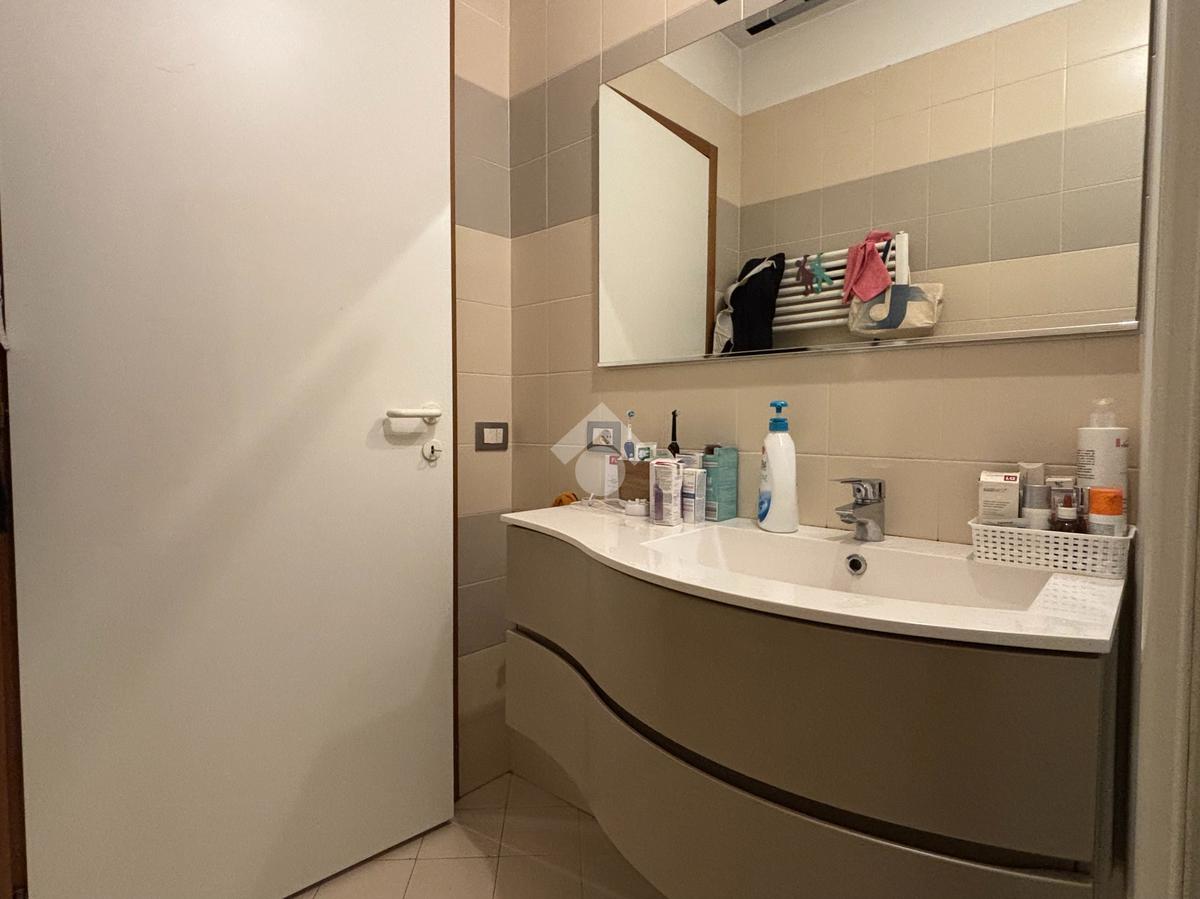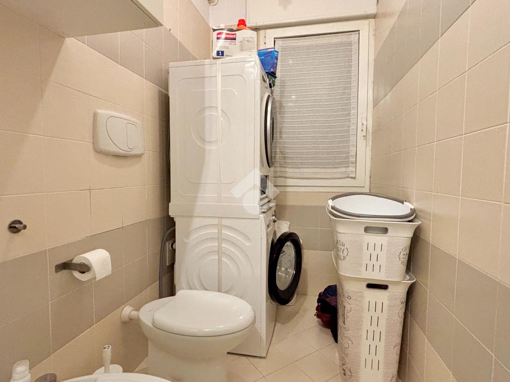 L’appartamento dispone di due bagni: uno principale e uno di servizio dotato di attacchi per la lavatrice, elemento pratico e funzionale. La caldaia è stata sostituita nel 2019, garantendo un buon livello di efficienza. Completano la proprietà 18 mq di pertinenze.