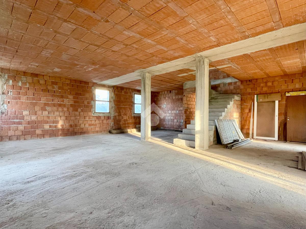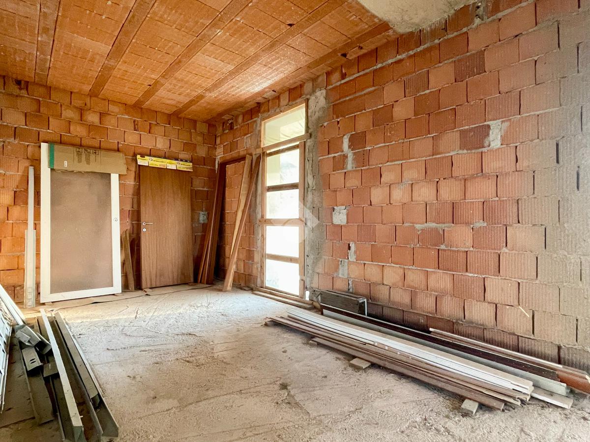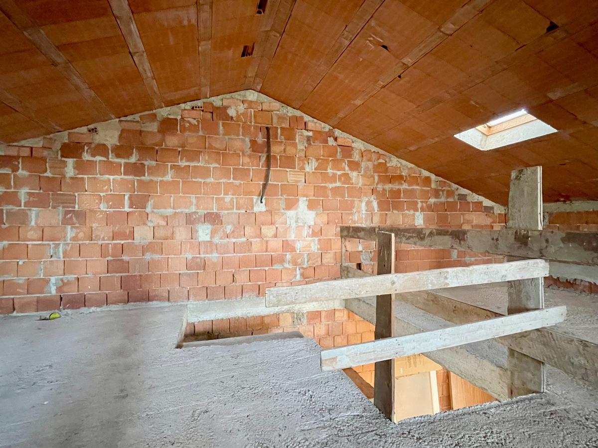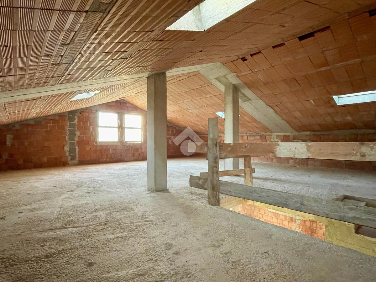 L'immobile presenta al piano terra la possibilità di creare una ampia zona giorno di 35mq con cucina separata, una camera matrimoniale e una singola, un bagno, un ampio ripostiglio e accesso diretto al box auto di 15mq. Il piano primo invece offre la possibilità di ricavare altre due camere da letto e presenta già la predisposizione per due bagni al piano.