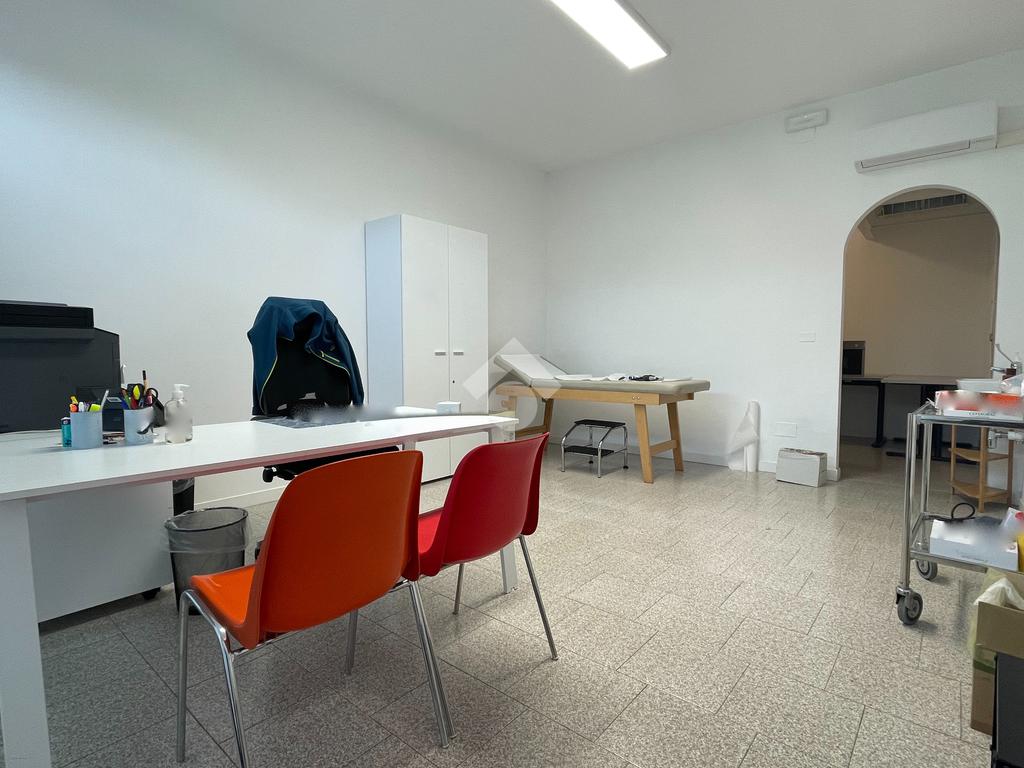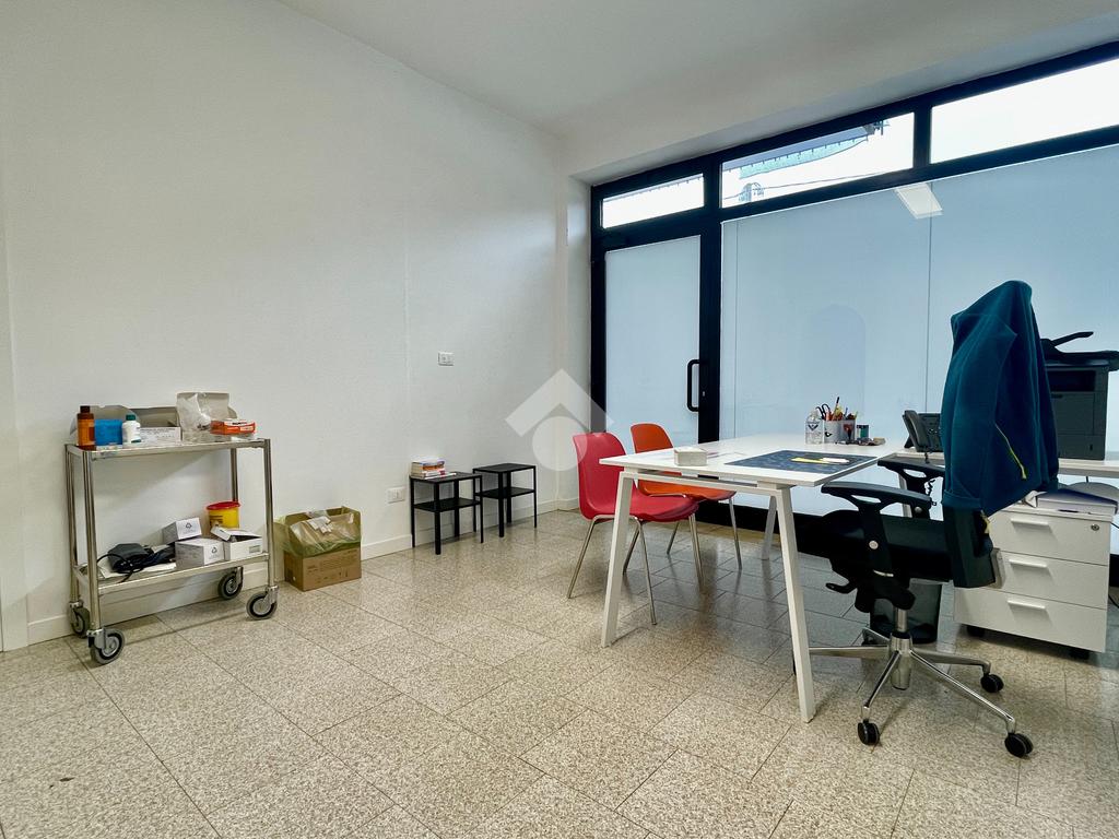Il negozio è composto da due vetrine e internamente si sviluppa con un'ampia sala d'attesa, un disimpegno con collegamento all'antibagno e al bagno e, infine, una seconda stanza con relativo ripostiglio.