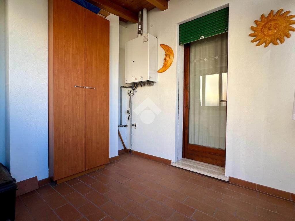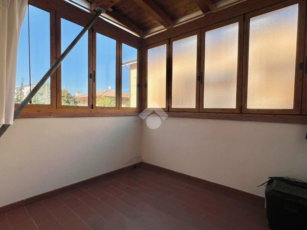 La seconda unità si trova interamente al primo piano ed è sviluppata su un unico livello. Si accede tramite un poggiolo privato e l’appartamento si compone di una luminosa zona giorno, cucina separata con accesso a una veranda, due camere da letto e due bagni finestrati. Questa parte dell’immobile è stata ristrutturata nei primi anni 2000 e si presenta in buone condizioni.