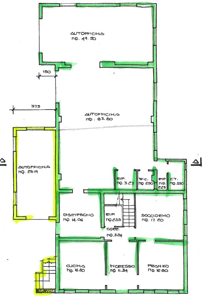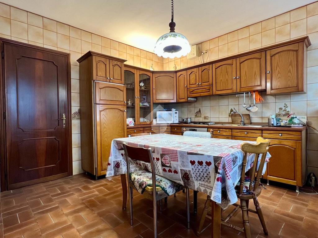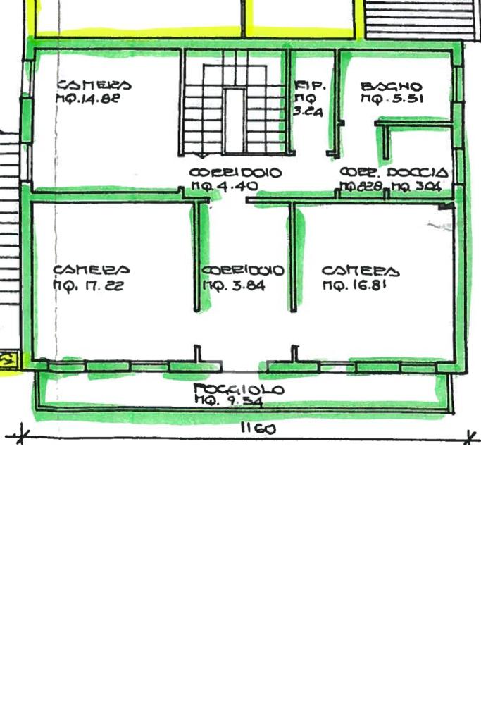 L'unità, disposta su due livelli, si compone al piano terra di ingresso, soggiorno, cucina separata, sala da pranzo e ripostiglio. Una scala interna conduce al primo piano, dove si trovano tre camere da letto matrimoniali, due bagni finestrati, un ripostiglio e un poggiolo. L’unità è dotata di un impianto fotovoltaico da 3 kW e gode di accesso diretto a un ampio box ci circa 100 mq, in passato utilizzato come officina. Questa zona, ampliata nel 1988, include anche un’area bagno, una lavanderia e la centrale tecnica, offrendo spazi comodi e multifunzionali. Di pertinenza anche un ampio giardino di circa 700mq (evidenziata l'area in verde nella sezione delle planimetrie).
