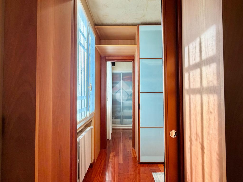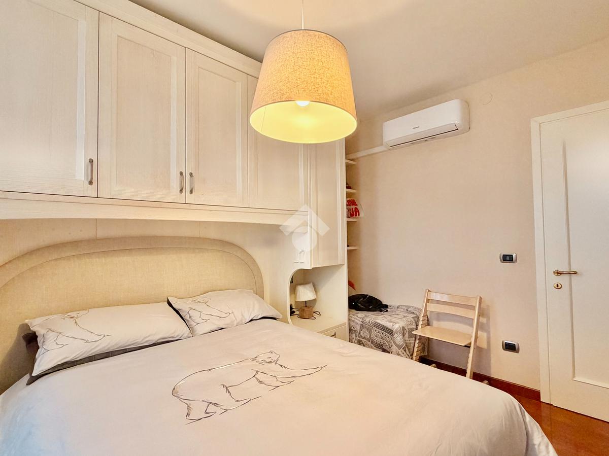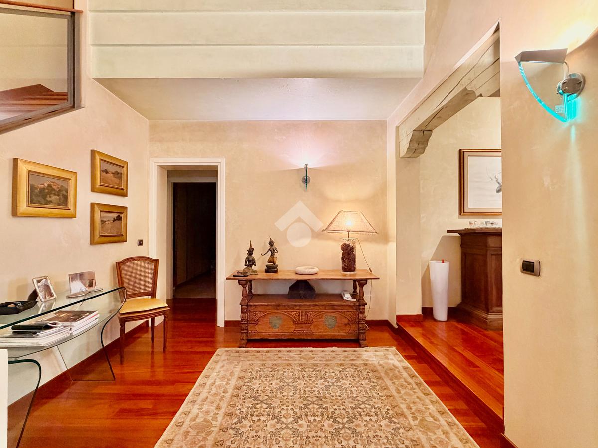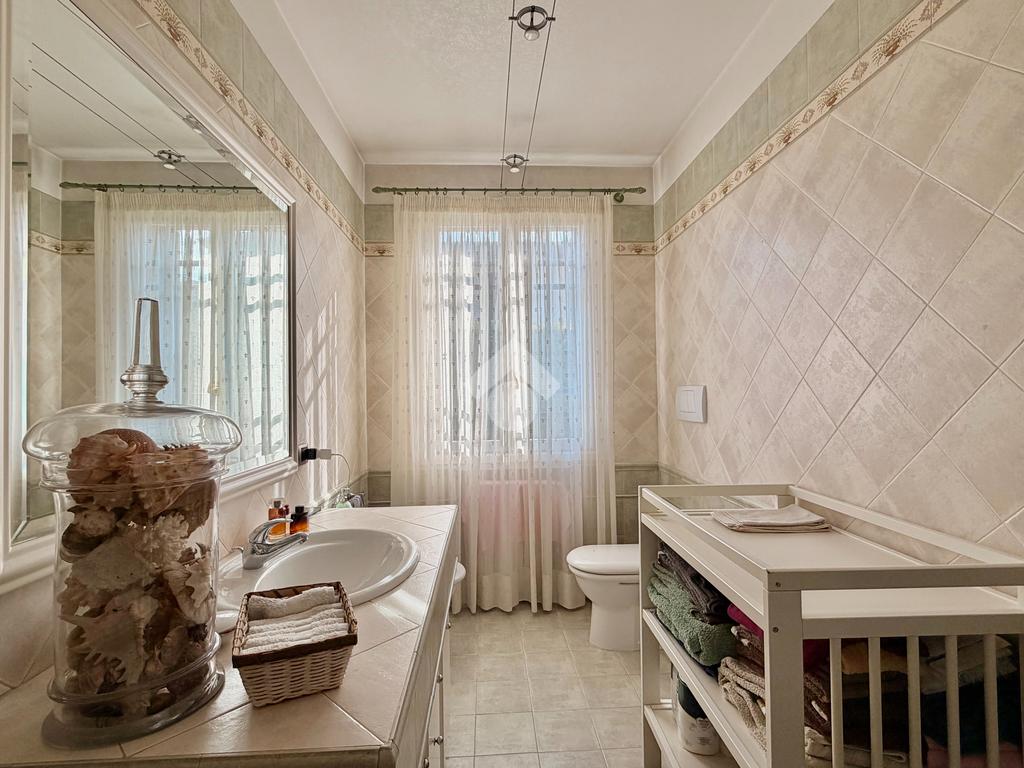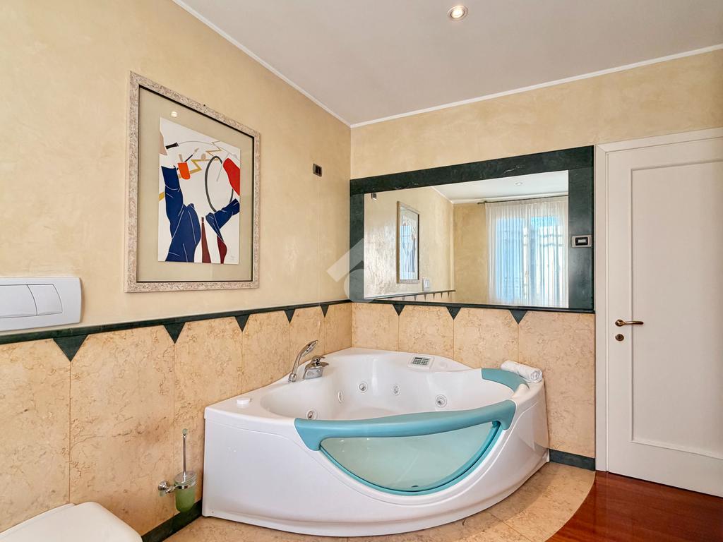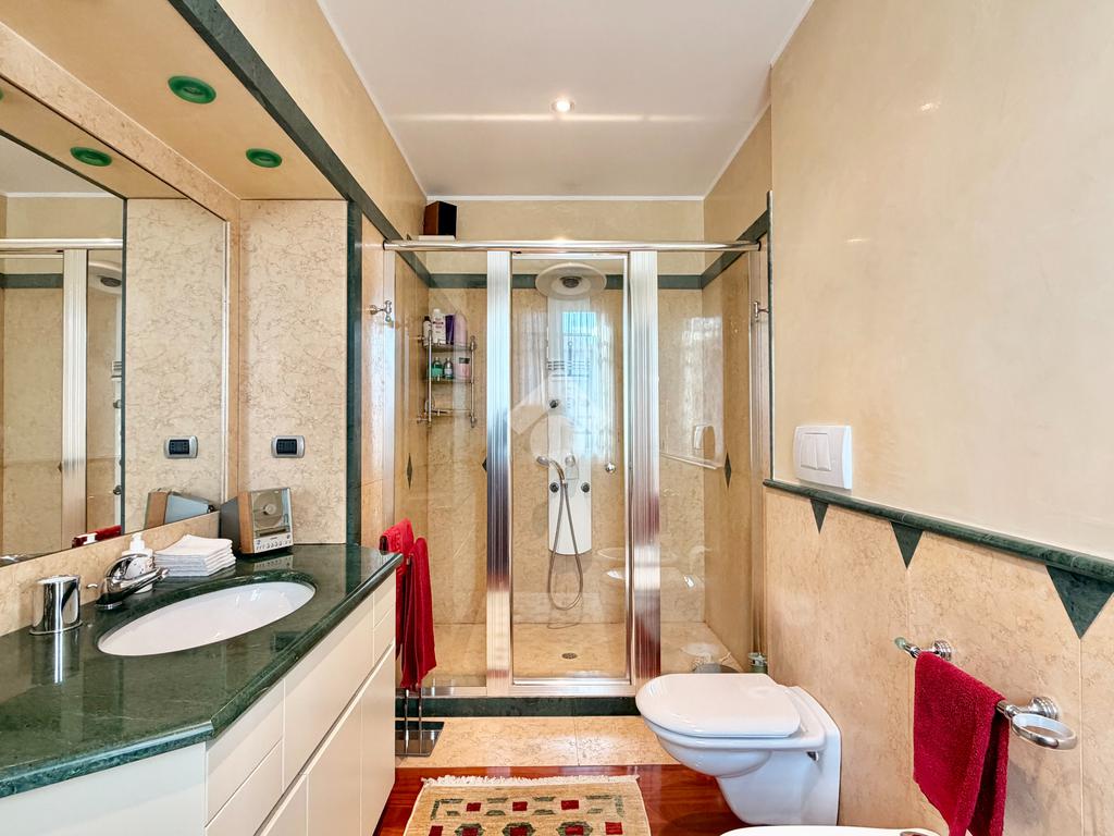 Il piano primo ospita la zona notte, composta da una confortevole camera matrimoniale e una singola dagli spazi molto generosi, servite da un ampio bagno finestrato dotato di vasca idromassaggio. La suite padronale, rivesta con una preziosa boiserie in legno di ciliegio, rappresenta un autentico rifugio di benessere, completa di cabina armadio e bagno privato, pensata per offrire il massimo del comfort e della riservatezza.