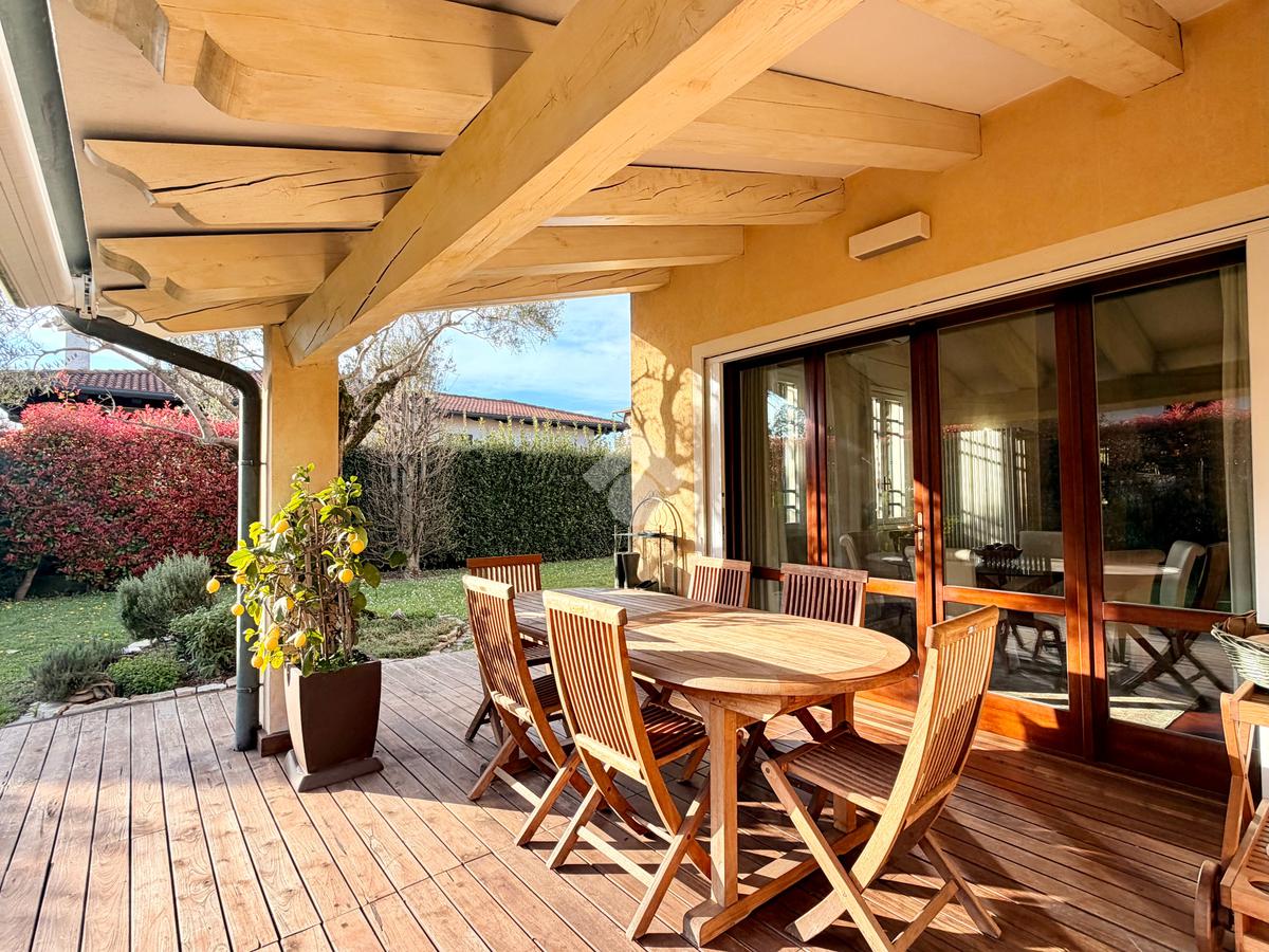 All’esterno, la proprietà è valorizzata da un elegante giardino piantumato, dotato di impianto di irrigazione, e da un suggestivo portico, ideale per pranzi all’aperto e momenti di relax in totale privacy. Completano la soluzione un garage di circa 20 mq, un posto auto coperto e la possibilità di realizzare ulteriori due posti auto coperti, a servizio della proprietà.