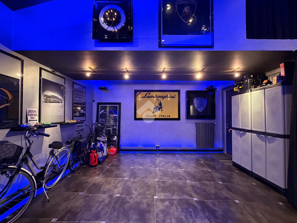 Completano il piano terra una spaziosa lavanderia, un bagno con doccia, uno studio ideale anche come home office e una magnifica taverna fuori terra, completamente arredata con uno stile ricercato e totalmente rivestita di larice antico, perfetta per momenti conviviali e di rappresentanza.
